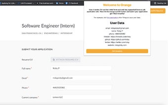 Оранжевый - это помощник по поиску работы, разработанный для пользователей Chrome, который экономит время. Обещая упростить утомительный процесс подачи заявок на работу, Оранжевый автоматизирует процесс подачи заявок, предоставляя рекомендации по вакансиям и автозаполнение заявок. Этот инструмент направлен на оптимизацию опыта поиска работы, позволяя пользователям быстро и легко подавать заявки в несколько компаний.